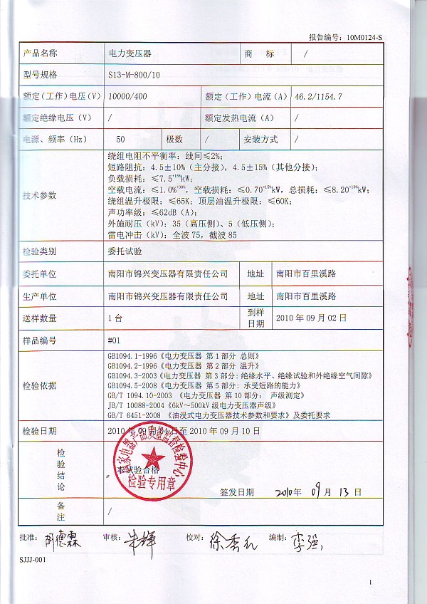 產(chǎn)品試驗報告